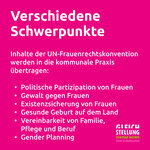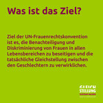 Was ist eigentlich die UN-Frauenrechtskonvention? Warum nennen manche Leute sie CEDAW? Was regelt die Konvention? Welche Auswirkungen hat ein internationales Gleichstellungsinstrument auf Kommunen? Und wer überprüft die Einhaltung?