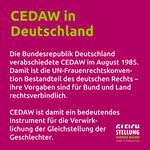 Im Format einer Visitenkarte klärt das Projekt kurz über CEDAW auf.