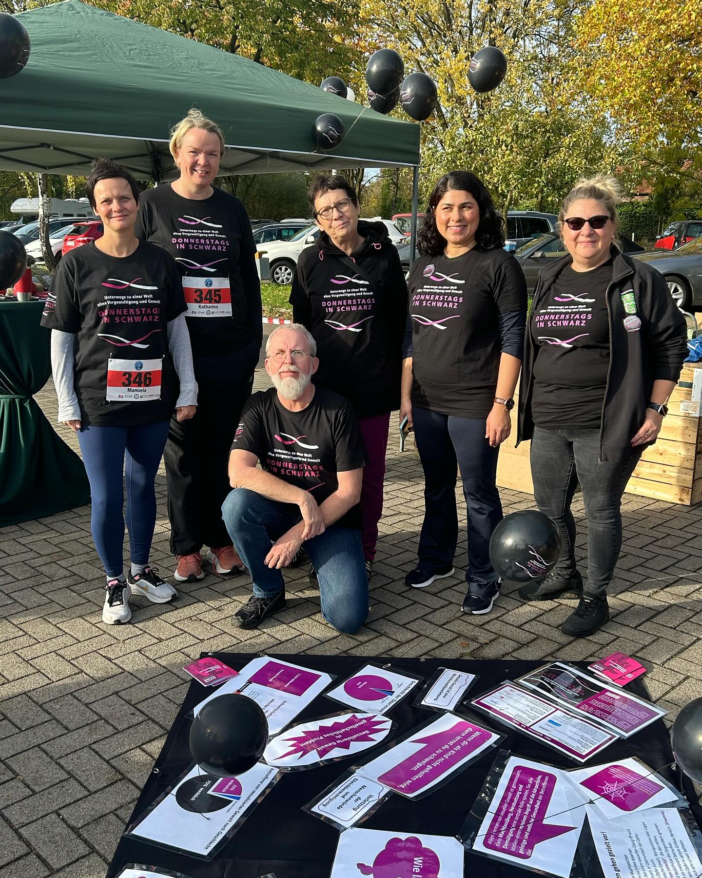 Beim örtlichen Butterkuchenlauf im Oktober wurde dafür ein Stand rund um dieses Thema aufgebaut. Hier fanden die Besucher:innen Informationen und Unterstützungsangebote. Gleichzeitig wurden Broschüren zur UN-Frauenrechtskonvention verteilt. Bedruckte T-Shirts von Läufer:innen, Ballons und Flyer machten auf die Aktion aufmerksam.
